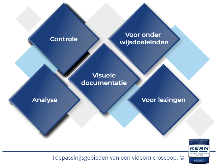 Videomicroscopen worden vooral gebruikt voor het analyseren, inspecteren of visueel documenteren van te onderzoeken objecten, bijvoorbeeld in de industrie, onderzoek of ontwikkeling. Ze leveren snelle, presentabele resultaten en zijn zeer betrouwbaar.
