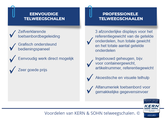 Speciale kenmerken van telweegschalen van KERN & SOHN