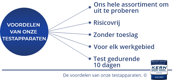 Ben je geïnteresseerd in een meettoestel uit onze shop, maar wil je het zekere voor het onzekere nemen en zeker weten dat het toestel echt geschikt is voor jouw toepassingsgebied? Maak dan gebruik van onze testapparaatservice! Gebruik het contactformulier en wij sturen u binnen zeer korte tijd een testapparaat toe! Zo kunt u zelf beoordelen of het gewenste model aan uw eisen voldoet. Natuurlijk adviseren wij u ook graag persoonlijk over de juiste keuze.